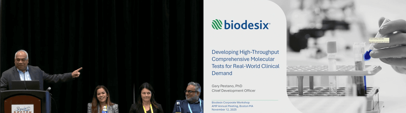AMP 2025 Biodesix R&D Roadmap and Product Pipeline presentation by Gary Pestano, Ph.D., Chief Development Officer, Biodesix; Alison Roos, Ph.D., Director, Medial Affairs, Thermo Fisher Scientific; Prithwish Pal, Ph.D., Director, Global Product Marketing - Oncology, Bio-Rad Laboratories; Ingrid Tatiana Erazo, Ph.D, Scientific Research Lead, Memorial Sloan Kettering Cancer Center