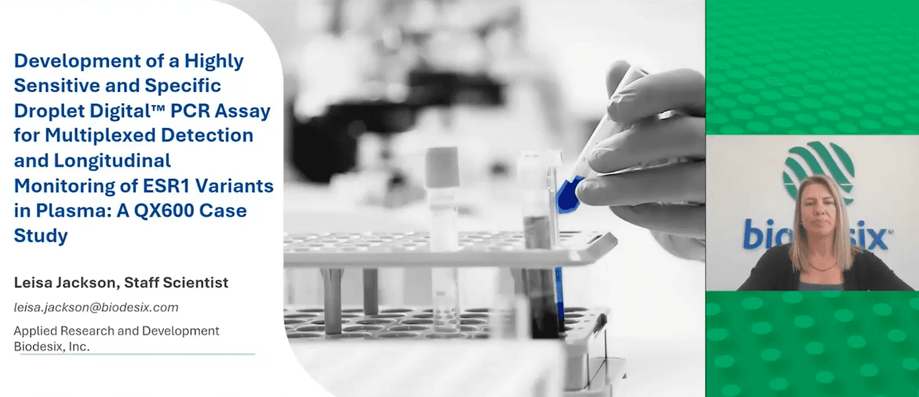 Session by Leisa Jackson, Biodesix Staff Scientist, on Development of a Highly Sensitive and Specific Droplet Digital PCR Assay for Multiplexed Detection and Longitudinal Monitoring of ESR1 Variants in Plasma: A QX600 Case Study